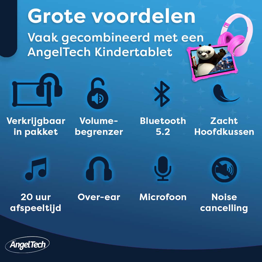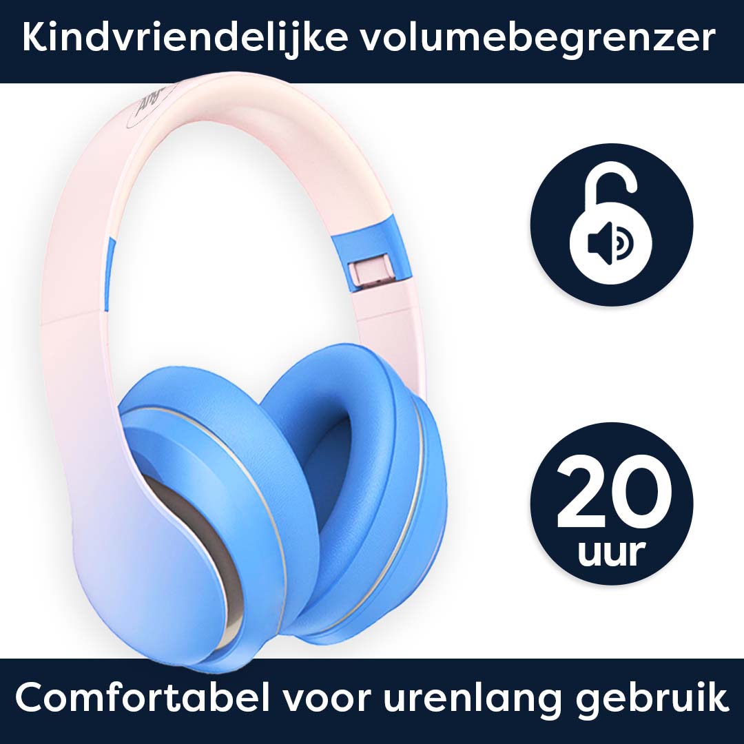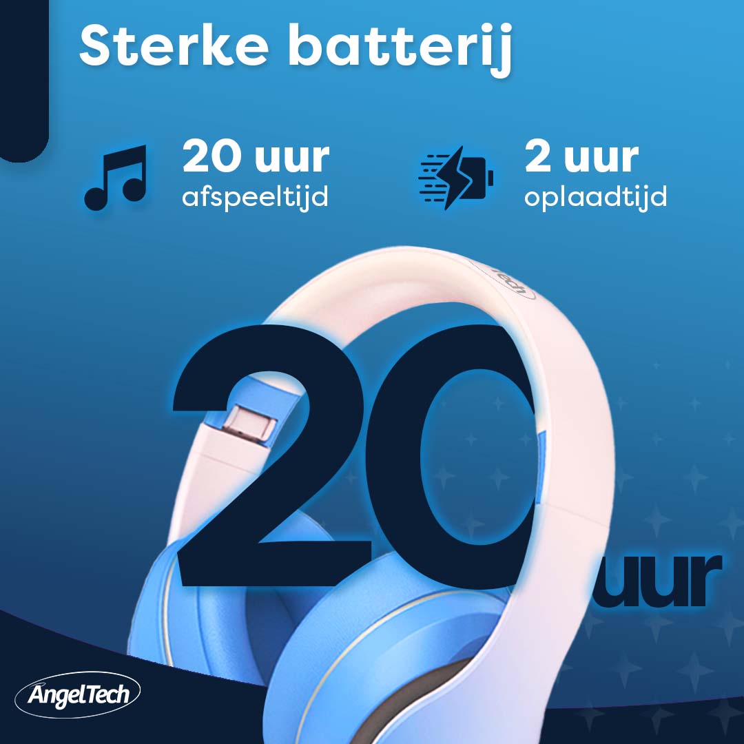Onze AngelTech over-ear Kinderkoptelefoon is uitgerust met een kindvriendelijke volume begrenzing tot 85? DB. Zo ben je er altijd van verzekerd dat het volume op een veilig niveau staat als je kleintje de koptelefoon gebruikt